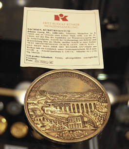 Künker war nicht nur am Donnerstag mit einer Münzauktion als Auftakt zur World Money Fair präsent, bei der eine seltene russische Goldmedaille von 1814 den stolzen Preis von 253.000 Euro erzielte, sondern zeigt auch auf seinem Stand wertvolle Exponate wie z.B. ein 233g schweres Silbermedaillon, das für 24.500 Euro seinen Besitzer wechseln soll. |
