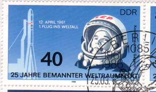 Juri Gagarin war der erste Mann im Weltall. Er umrundete am 12.4.61 in knapp 2 Stunden die Erde. |