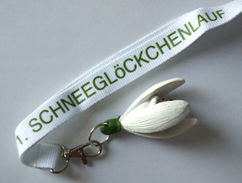 Abbildung: 8. Schneeglöckchenlauf 2017 in Ortrand Bild / Finisher: Wolfram Kunth Sie wurde in diesem Jahr neu gestaltet und soll ein Schneeglöckchen darstellen.Sie kann auch richtig bimmeln und ist die Teilnehmer-Medaille für die Erwachsenen. |