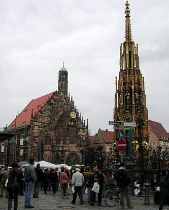 Leider gab es das gute Bier aus Buttenheim hier nur im Plastikbecher. Am Hauptmarkt mit Blick auf den schönen Brunnen schloss ich dann den Trempelmarktgang ab. |
